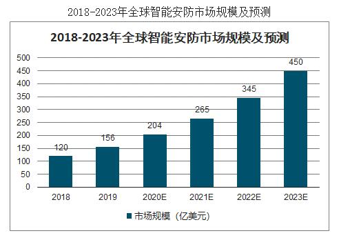 全球智能安防市場(chǎng)規(guī)模將從2018年的120億美元增長(zhǎng)到2023年的450億美元,年復(fù)合高達(dá)30.26%。