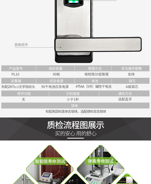 商品名稱(chēng):中控智慧(zkteco)PL10指紋鎖智能鎖電子機(jī)械鎖家用防盜門(mén)鎖