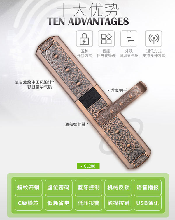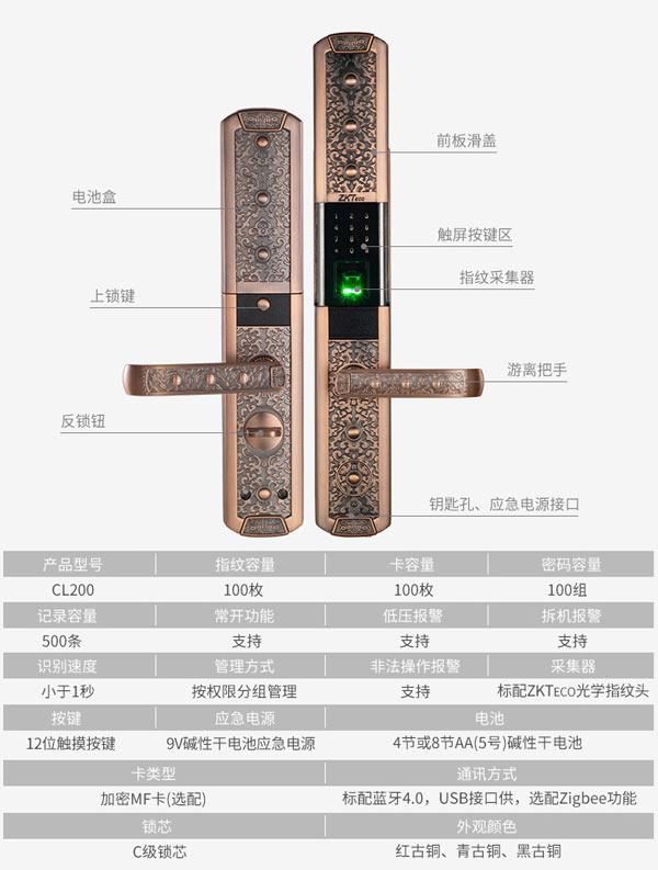 商品名稱:中控智慧(ZKTeco)CL200指紋鎖家用別墅防盜電子門鎖手機(jī)APP遠(yuǎn)程遙控智能密碼鎖 (指紋+密碼+刷卡+鑰匙+手機(jī)APP)青古銅 標(biāo)配