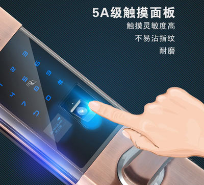 AJL-6601指紋鎖采用加厚鋅合金外殼,更安全、更耐用;5A級(jí)觸摸面板靈敏度高,不易沾指紋耐磨。