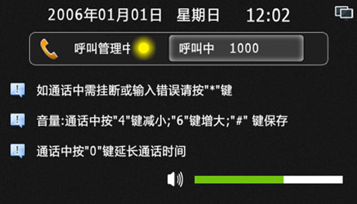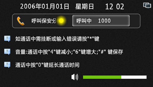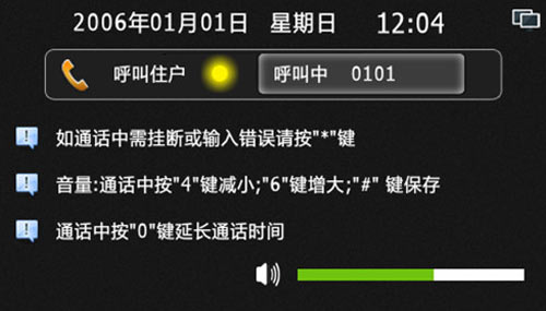 4) 輸入房號(hào)時(shí)錯(cuò)誤,可按“*”鍵清除,呼叫或通話過(guò)程中按“*”鍵可退出或結(jié)束通話,通話中按“4”或“6”可減小或增大音量,通話中按“0”鍵可延長(zhǎng)通話時(shí)間至60秒。
