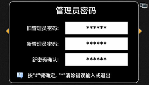 1) 管理人員可根據(jù)舊密碼修改為新的管理員密碼,輸入正確的舊密碼(6位)和兩次相同的新密碼(6位),即可設(shè)置新的管理員密碼,便于管理。如圖4.3.1: