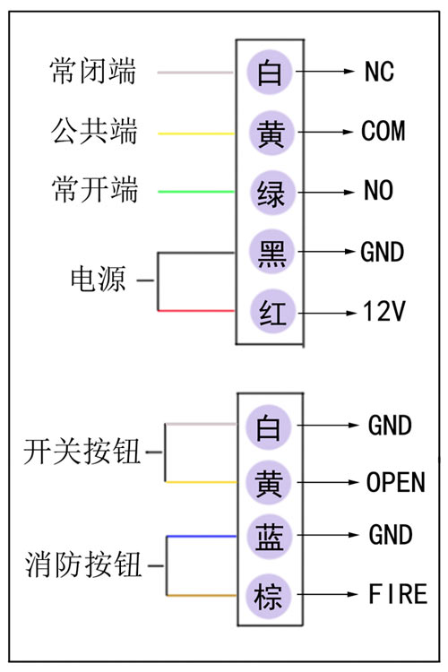 三、指紋門禁機(jī)接線說明(底蓋安裝是標(biāo)準(zhǔn)86底盒的尺寸)