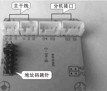 樓層和戶數(shù)符合標準,可直接通過設(shè)置解碼器地址碼跳針(1. 2.3.4、5. 6. 7插針)來設(shè)置房號,解碼器板子如下圖所示: