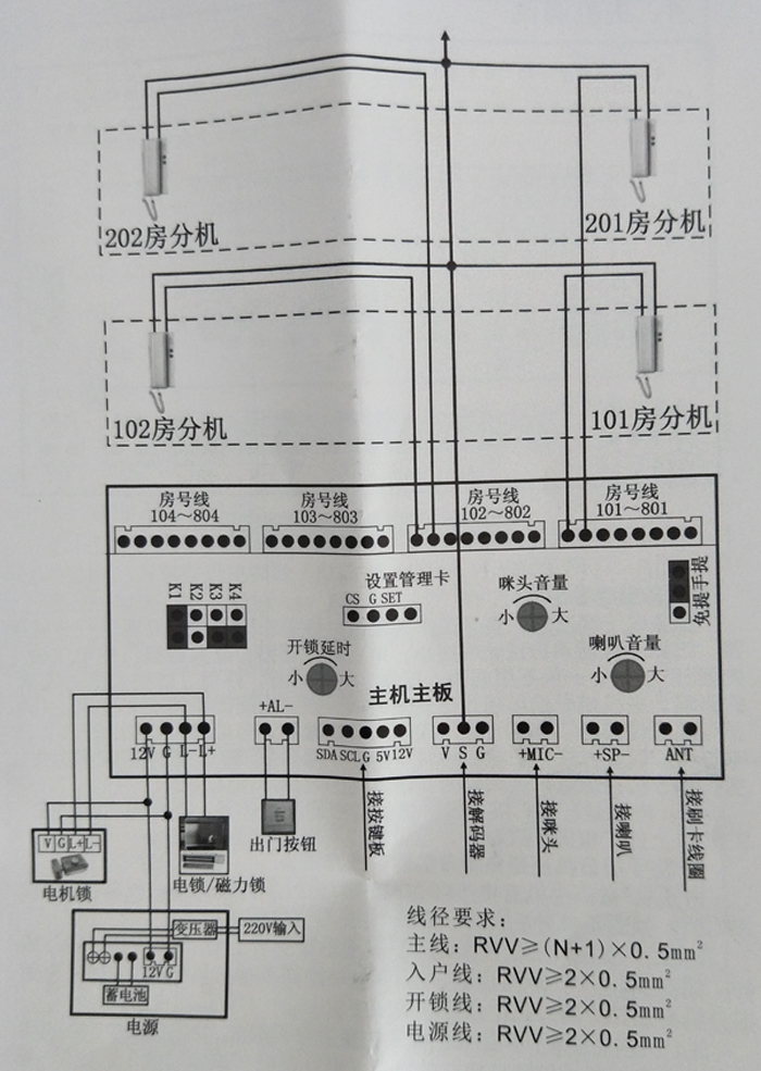 3 )系統(tǒng)接好線(xiàn)即可使用,主機(jī)和分機(jī)無(wú)須編碼;